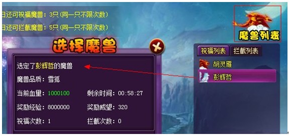 增加魔兽列表功能,点击列表中的名单可以快捷查看祝福、拦截的魔兽信息。