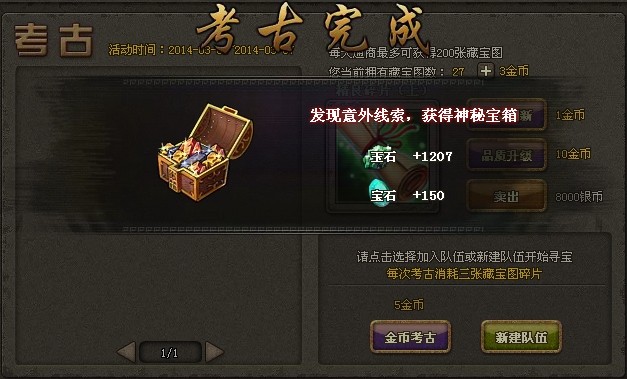 2) 每次考古消耗3张藏宝图,奖励也变为三倍