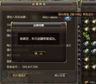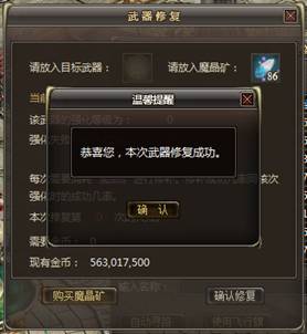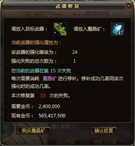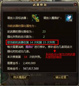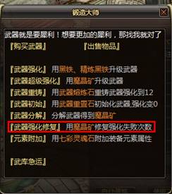 使用武器强化修复功能需要使用魔晶矿,武器强化修复是有一定成功率的,