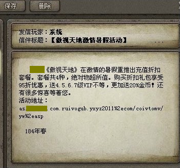 注:正确的系统邮件中不会包含网站地址,而是引导玩家本人进入陪游傲视天地唯一官网进行查看,请玩家注意分辨!